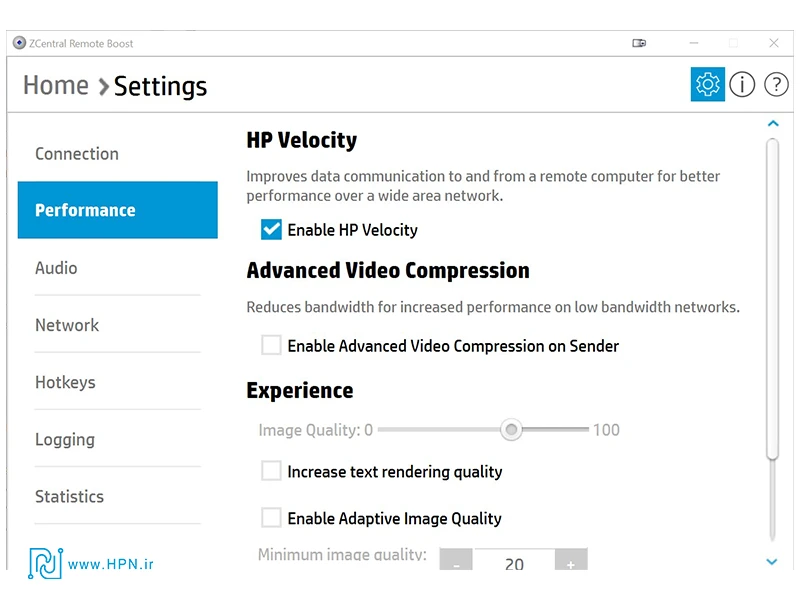 - شبکه و اتصال: یک اتصال اینترنتی پایدار و پرسرعت (حداقل 10 مگابیت بر ثانیه برای کارهای گرافیکی سنگین) ضروری است. نرمافزار از شبکههای LAN محلی برای اتصال مستقیم و اینترنت برای دسترسی جهانی (با استفاده از VPN، port forwarding یا gateway ابری HP) پشتیبانی میکند. برای بهینهسازی عملکرد در شبکههای ضعیف، ویژگی HP Velocity به طور خودکار پهنای باند را مدیریت میکند.